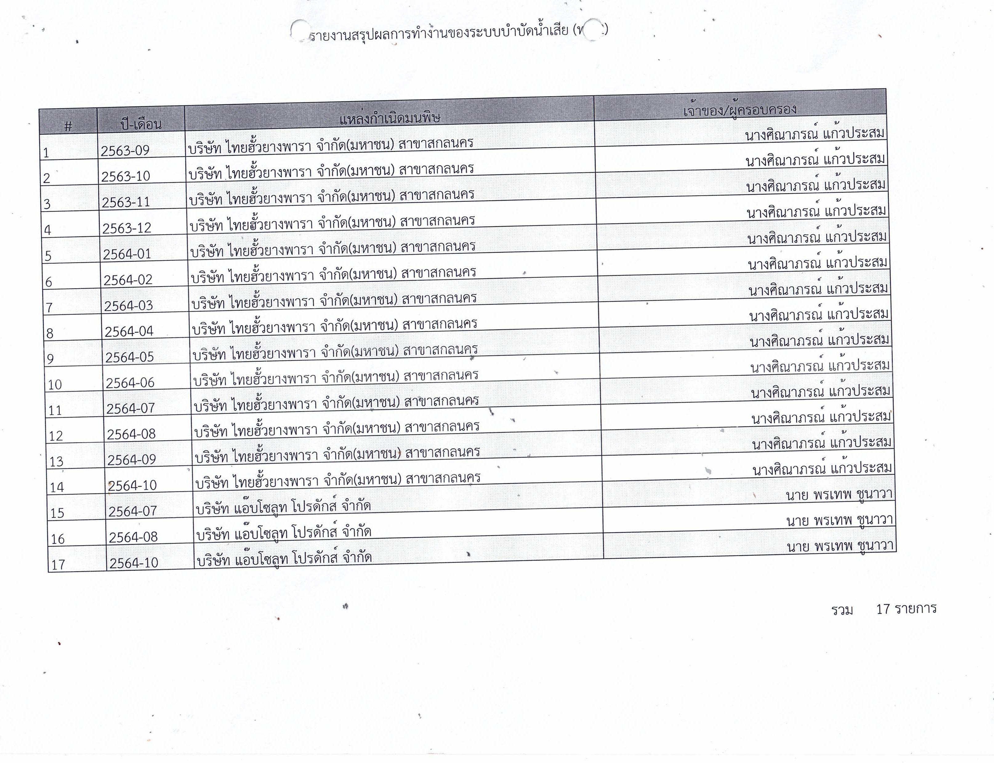 รายงานสรุปผลการทำงานระบบบำบัดน้ำเสีย